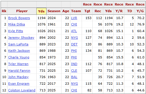 Rookie Tight Ends to reach 700+ Receiving Yards