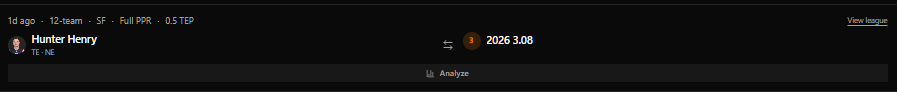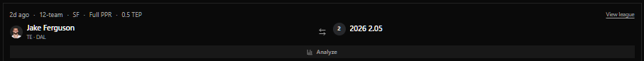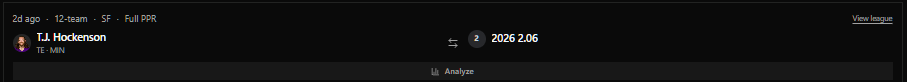 The realistic trajectory, is that we just have to wait longer for Sadiq to see upside. Honestly though, that should be our baseline from rookie Tight Ends anyway, and Sadiq is the archetype of player who if he hits, he's going to hit big. I think we can afford to be patient in that the Jets project to be in line for a top Quarterback in the 2026 draft. A move that could instantly turn this franchise 180 degrees into a very intriguing offense. Sadiq is currently the 8th ranked player in my rookie Superflex rankings, and I think 1.08 is a reasonable selection in rookie drafts in a lackluster draft where he's one of the few high-ceiling players. For the short-term, I wouldn't go into 2026 expecting Kenyon Sadiq to be your full-time fantasy starter from the jump. If that's the case I've shared some affordable Tight Ends you could trade for to fill that gap. After that, we exercise patience and optimism.