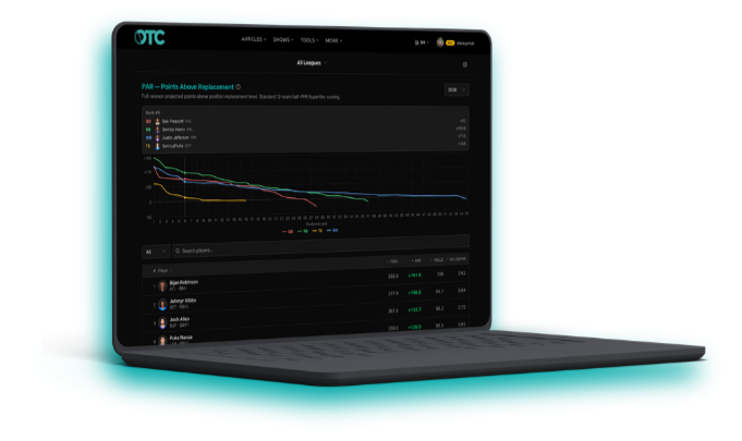 See how far each player sits above the waiver wire. A dynasty-native twist on WAR, tuned to your league settings.